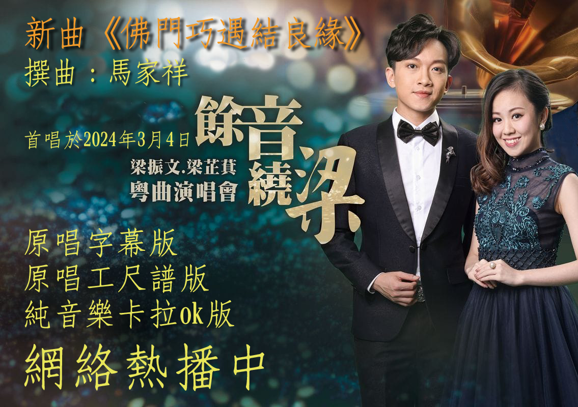 2024年,我的第一首粵曲作品在香港面世了。 蒙兩位粵劇新秀演員梁振文、梁芷萁不嫌, 於3月4日他們的演唱會選唱了我的作品《佛門巧遇結良緣》。 歡迎各位按入以下鏈接欣賞,點讚及分享: