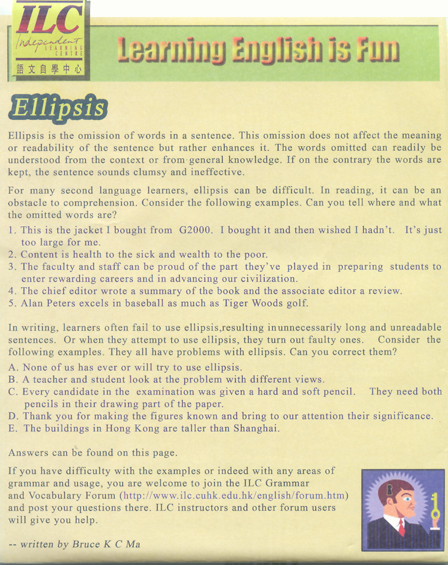 Ellipsis. University Marketplace, 126, March, 2006, the Chinese University of Hong Kong. |