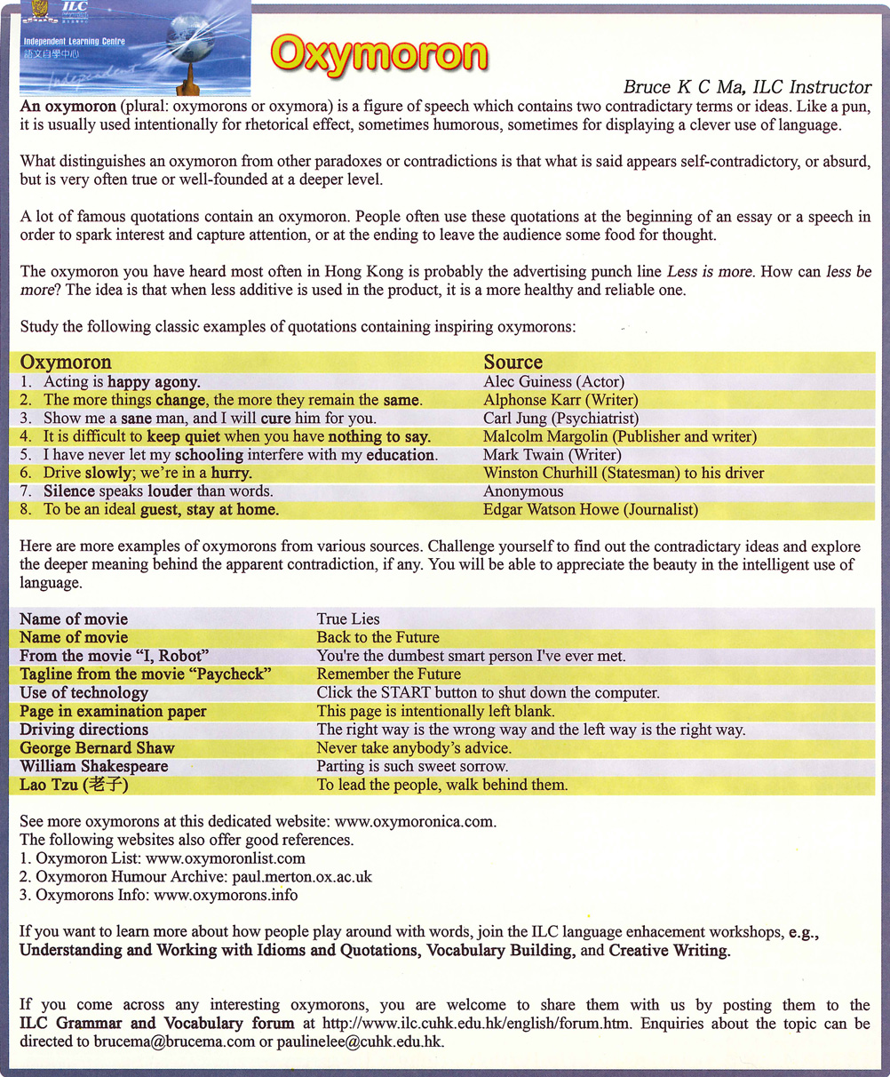 Oxymoron. University Marketplace, 133, March, 2007, the Chinese University of Hong Kong |