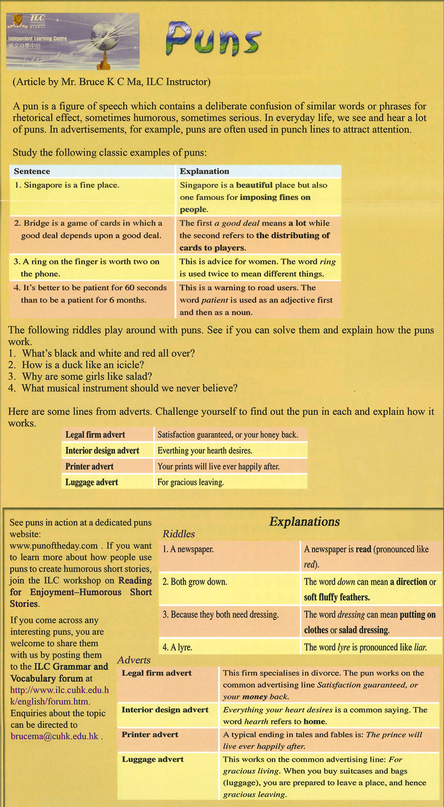 Puns. University Marketplace, 130, November, 2006, the Chinese University of Hong Kong |