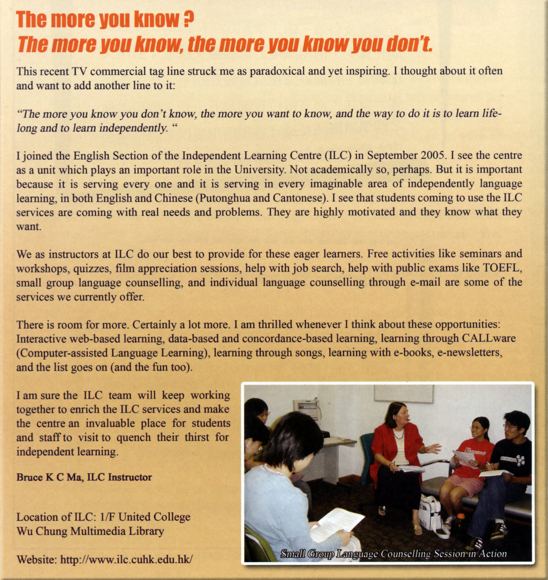 The more you know? University Marketplace, 123, December, 2005, the Chinese University of Hong Kong. |
